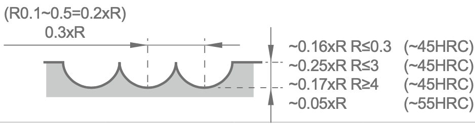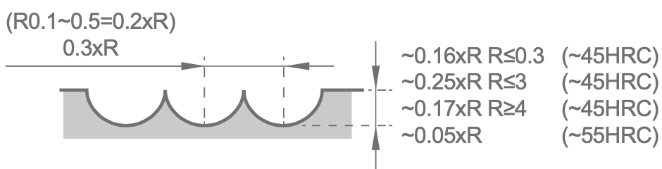1. 溝加工時之進給速度,請設定為上述值之60%。